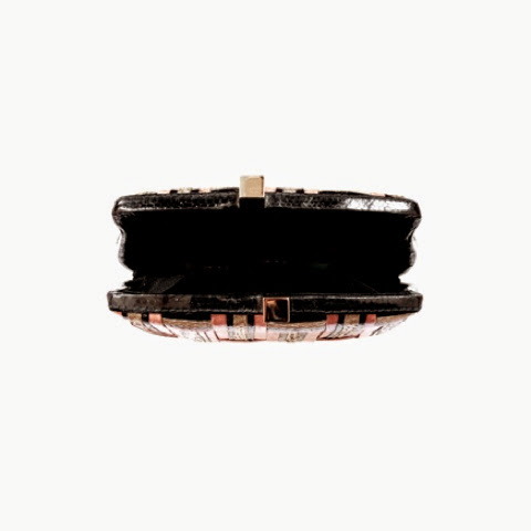 For her creations she uses only precious and selected materials as mother of pearl, snake skin and laquered wood embellished with Swarovski elements, handmade embroideries or paintings.